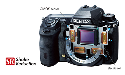 K-3 posiada zaawansowany system stabilizacji matrycy SR, który działa z dowolnym kompatybilnym obiektywem wymiennym Pentaxa. Dzięki kontrolerowi dedykowanemu servo Sr i zwiększeniu siły magnetycznej napędzającej system SR, mechanizm zapewnia bardziej stabilną i efektywną kompensację drgań aparatu, niż kiedykolwiek wcześniej.